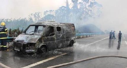 廣西一運鈔車起火燒毀11箱鈔票 引發(fā)山火